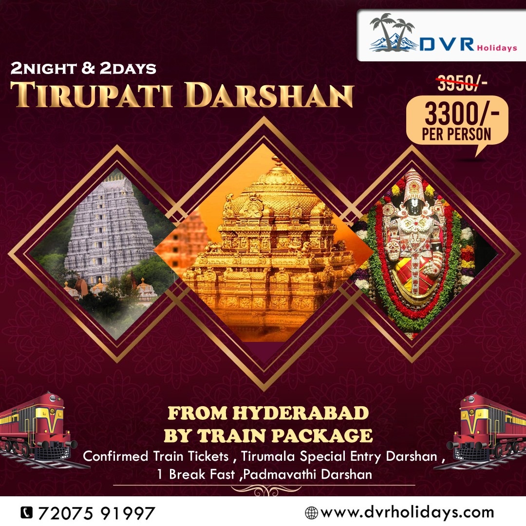 • DKR Holidays 1 Night 2 Days Tirupati package from from Tirupati Airport/Railway Station by at affordable price. All our packages are personalized and private which enables consumers to build their own package of accommodation, and private rental car instead of a pre-defined or group tour packages and there would be no mingling of other groups in your itinerary.